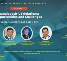 A very timely and relevant discussion was organized by the Bangladesh Enterprise Institute on “Bangladesh-US Relations: Opportunities and Challenges” as a new US administration under President Joseph Biden assumes office. The speakers included Bangladesh’s Foreign Minister, Foreign Secretary, Bangladesh Prime Minister’s Private Sector and Investment Adviser, US Ambassador to Bangladesh, and the new Bangladesh Ambassador to the US. The keynote presentation was made by Distinguished Fellow, Amb. Farooq Sobhan, former Foreign Secretary and founder, BEI. The discussion was hosted and moderated by Amb. Humayun Kabir, President, BEI.
