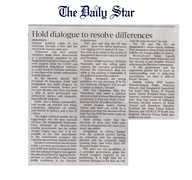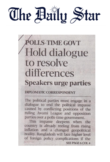 Polls-Time Govt Hold Dialogue to resolve differences, The Daily Star, 20 June 2023