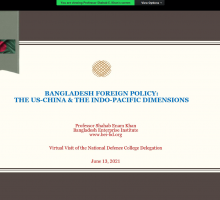 On behalf of BEI, Ambassador M. Humayun Kabir, President of BEI, welcomed the NDC team and briefly outlined the focus and various activities of BEI. Prof. Shahab Enam Khan, Research Director, made a presentation on the “Bangladesh Foreign Policy: The US-China Dimensions & the Indo-Pacific Dimensions”. The presentation was followed by a Q&A session where BEI senior staff fielded questions from the NDC course members. NDC team leader thanked BEI for their support to NDC and for providing an excellent opportunity for an interactive and useful interaction with the BEI leadership. They also promised to continue this collaboration in the future.